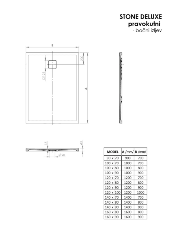 TUŠ KADA STONE DELUXE 120X80 CRNA